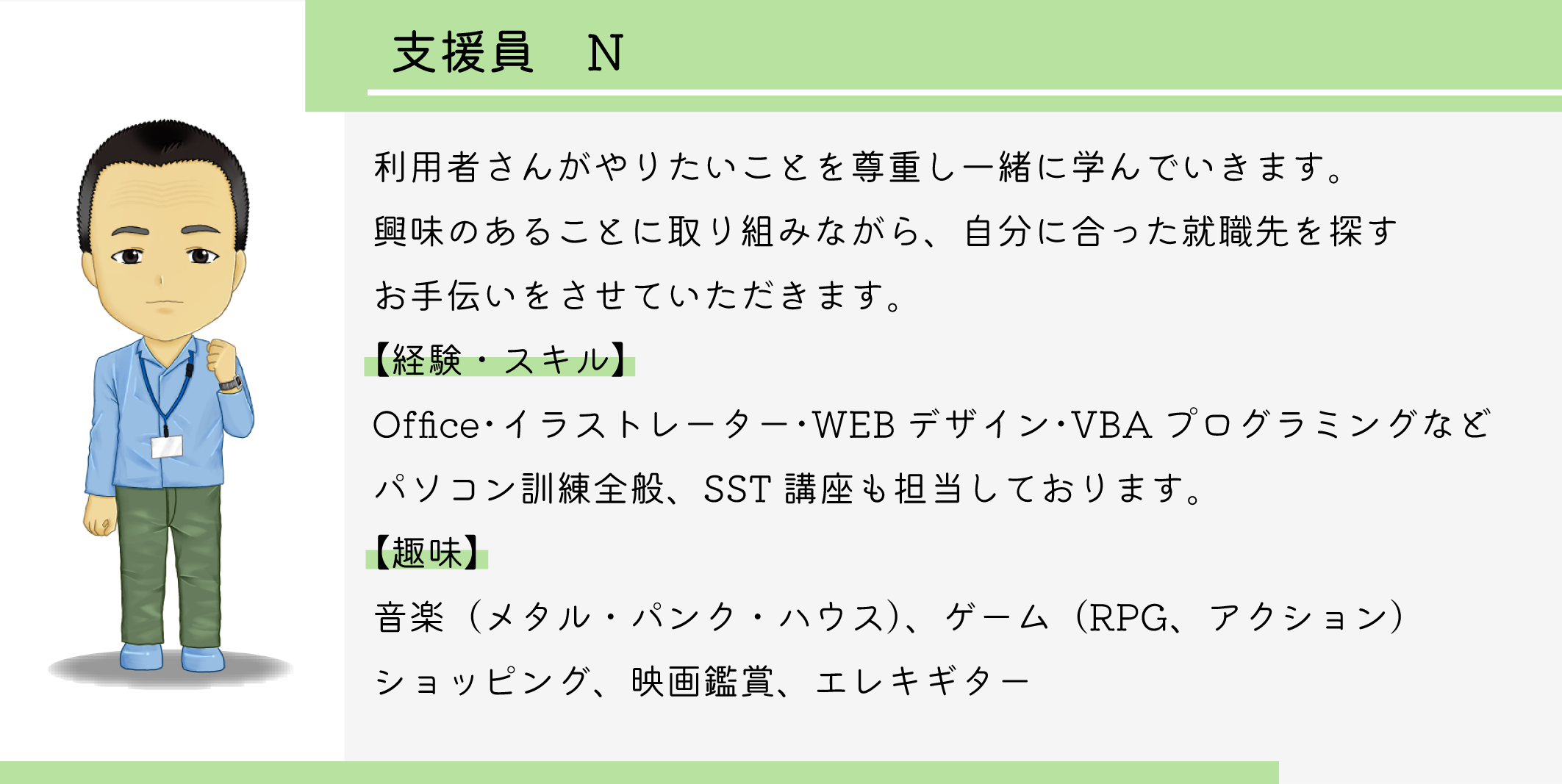 コミュニケーション / Excel VBA / 適性検査・作業訓練 / 各種筆記検定など、その他ご希望される資格勉強を行うことも可能。