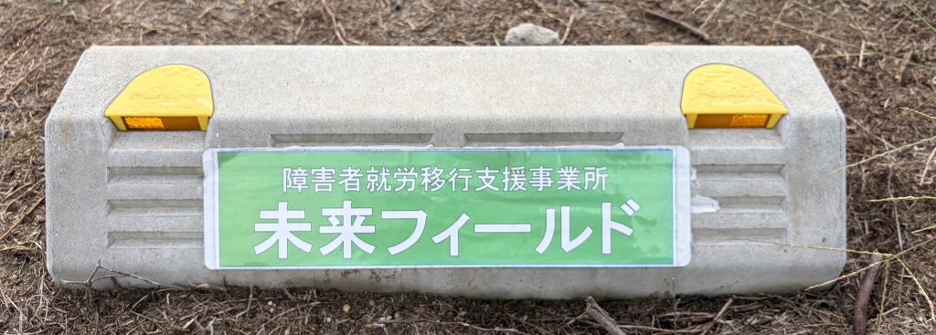 番号はどこにも書いておりませんが、車止めに「未来フィールド」の小さな看板をつけております。