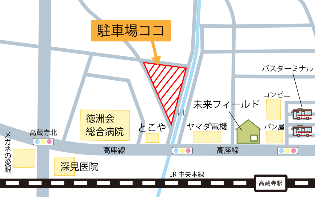駐車場の住所:春日井市高蔵寺町北2丁目599-11(ナビにご利用ください。)