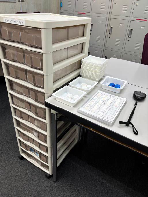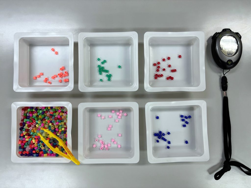 実務作業訓練では、計量作業やプラグ組立、キャップの仕分け、ピッキング作業、ビーズの色分け作業など、実際の職場でも行われている軽作業に近い内容の訓練に取り組みます。